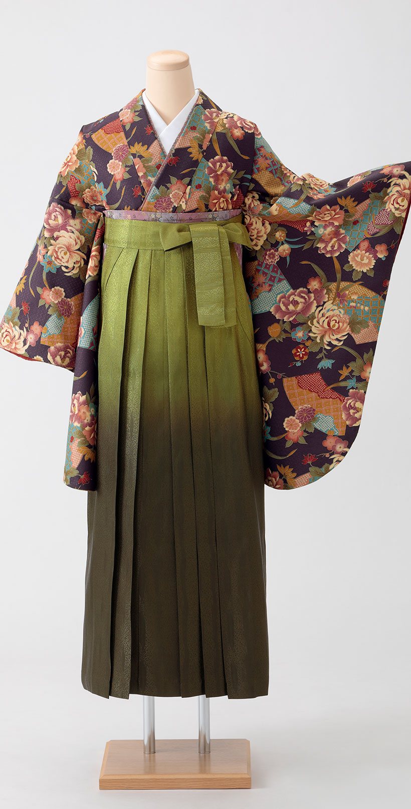 着物の色のトーンと、「緑系」袴の色のトーンを合わせてあげると、さらにハイセンスな印象になります。